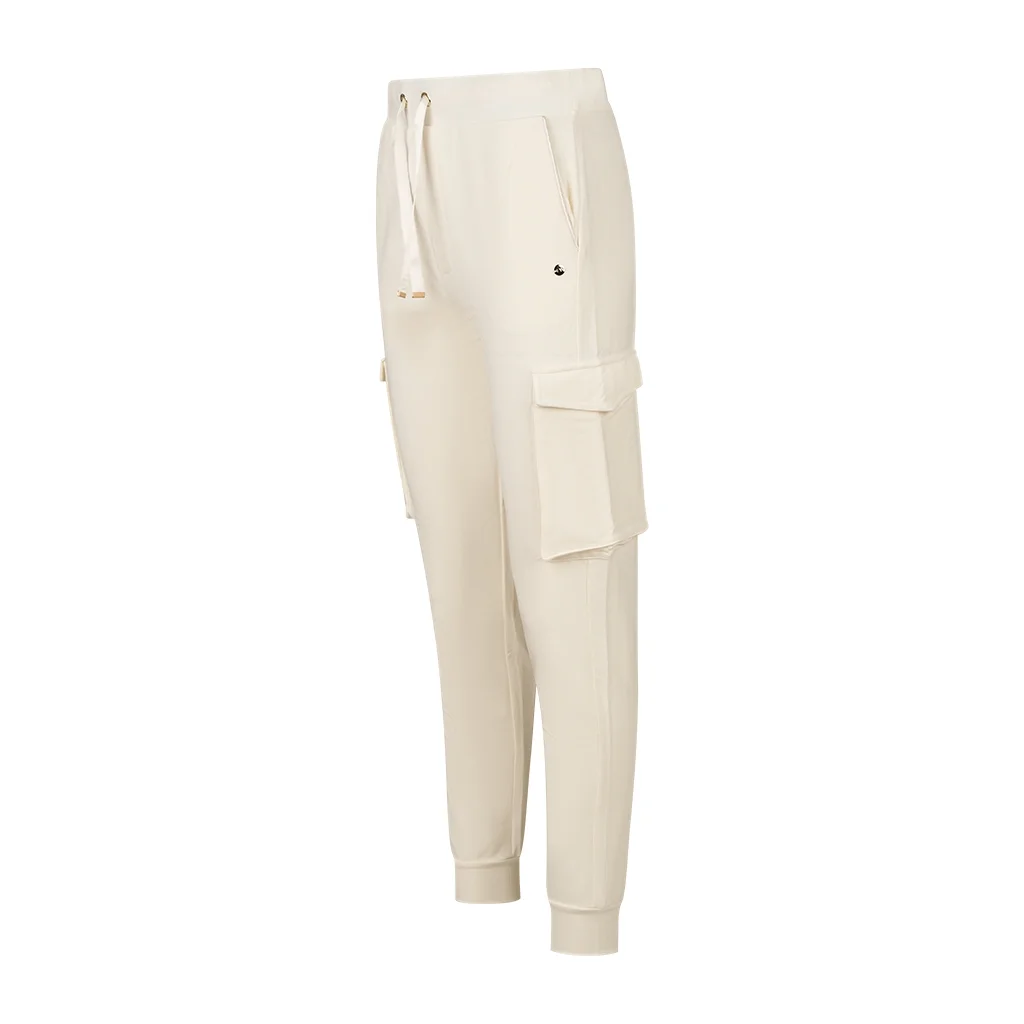 Το γυναικείο αθλητικό παντελόνι σε στιλ cargo συνδυάζεται με απαλό, επώνυμο ύφασμα από μοντάλ, French terry. Λείο και ιδιαίτερα απαλό στην αφή δημιουργεί ένα ρούχο αφιερωμένο στην άνεση και προσφέρει μέγιστη ελευθερία κινήσεων. Το σατέν κορδόνι, που σφίγγει και προσαρμόζεται στη μέση και το λογότυπο κεντημένο με χρυσοκλωστή δίνουν μία λαμπερή πινελιά σ’ αυτό το παντελόνι, το οποίο αποτελεί ιδανική επιλογή κάθε ώρα της ημέρας.