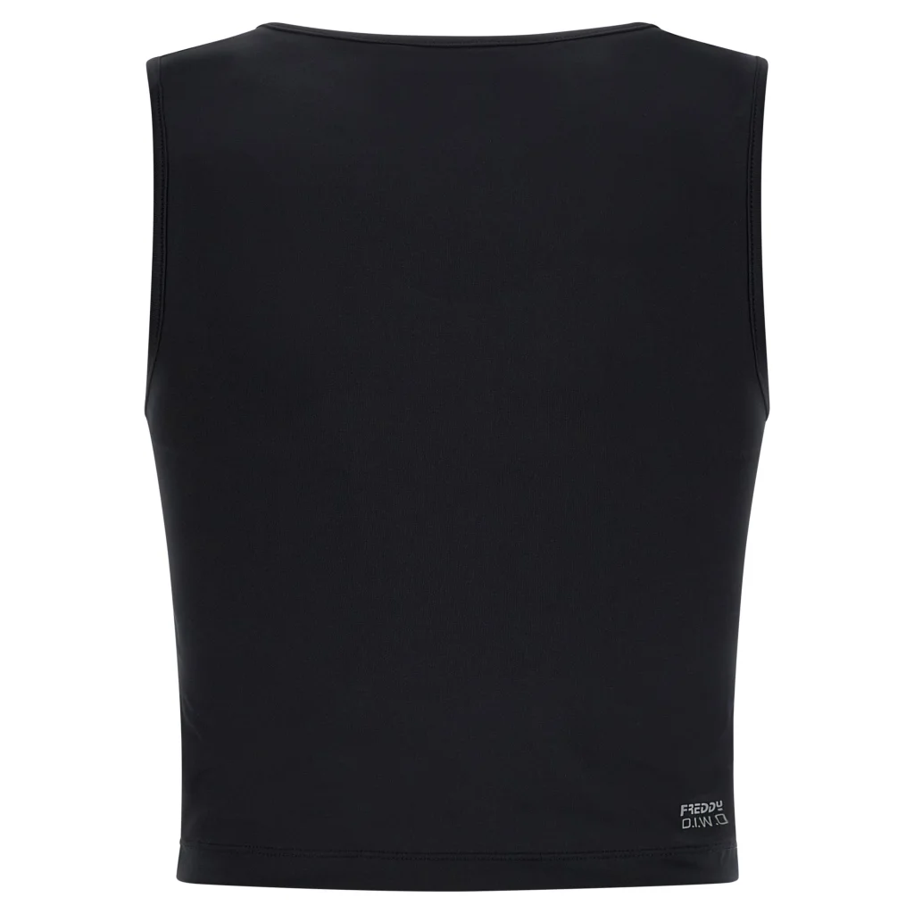 Αυτό το στυλ μπλούζας έχει ως κύρια χαρακτηριστικά τη λαιμόκοψη, τις κανονικές τιράντες με φαρδύ όμως μπράτσο, ίσιο στρίφωμα και στενή εφαρμογή. Το λογότυπο FREDDY σε διαφορετική απόχρωση κάτω από τη λαιμόκοψη και το λογότυπο D.I.W.O.®, που πιστοποιεί το ύφασμα στην πίσω πλευρά ολοκληρώνουν τις κομψές λεπτομέρειες. Αυτό το άνετο και λειτουργικό ρούχο είναι από καλά αεριζόμενο, φιλικό προς το περιβάλλον, ύφασμα απόδοσης D.I.W.O., το οποίο είναι κατασκευασμένο από ίνα από ανακυκλωμένα πλαστικά μπουκάλια.