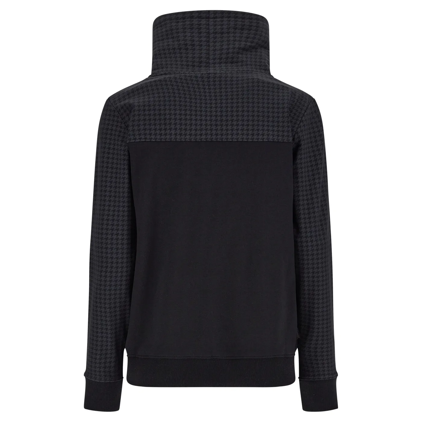 Φούτερ με ευρύχωρο ψηλό λαιμό και στάμπα ψαροκόκαλο στον αυχένα, τον λαιμό και τα μανίκια. Οι πρόσθετες λεπτομέρειες περιλαμβάνουν κορδόνια για την προσαρμογή του γιακά, μπροστινές τσέπες και ραβδωτό ύφασμα στο στρίφωμα στην κάτω πλευρά και τις μανσέτες. Έχει κανονική εφαρμογή (ούτε πολύ φαρδύ ούτε πολύ στενό). Διαθέτει λεπτομέρειες σε χάλκινη απόχρωση, όπως είναι η γυαλιστερή στάμπα Freddy στην μπροστινή πλευρά του στήθους και μεταλλικά στοιχεία στα κορδόνια, που ολοκληρώνουν αυτήν την κομψή εμφάνιση. Είναι ένα βολικό ρούχο που συνδυάζει αβίαστα το χαλαρό στυλ, το σικάτο σχέδιο και το απαλό κι ελαστικό φλις, που προσφέρει τη χαρά και την ικανοποίηση της ελευθερίας κινήσεων.